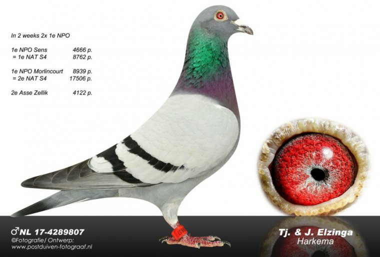不僅獲得NPO冠軍,還是一周內憑藉一羽賽鴿取得2項NPO冠軍。這就是艾辛加鴿舍的NL17-4289807取得的超級賽績。這羽賽鴿獲得NPO摩林科8939羽冠軍,幾天後又獲得NPO聖斯4666羽冠軍。這羽天賦賽鴿的父親為“哈利”直子,